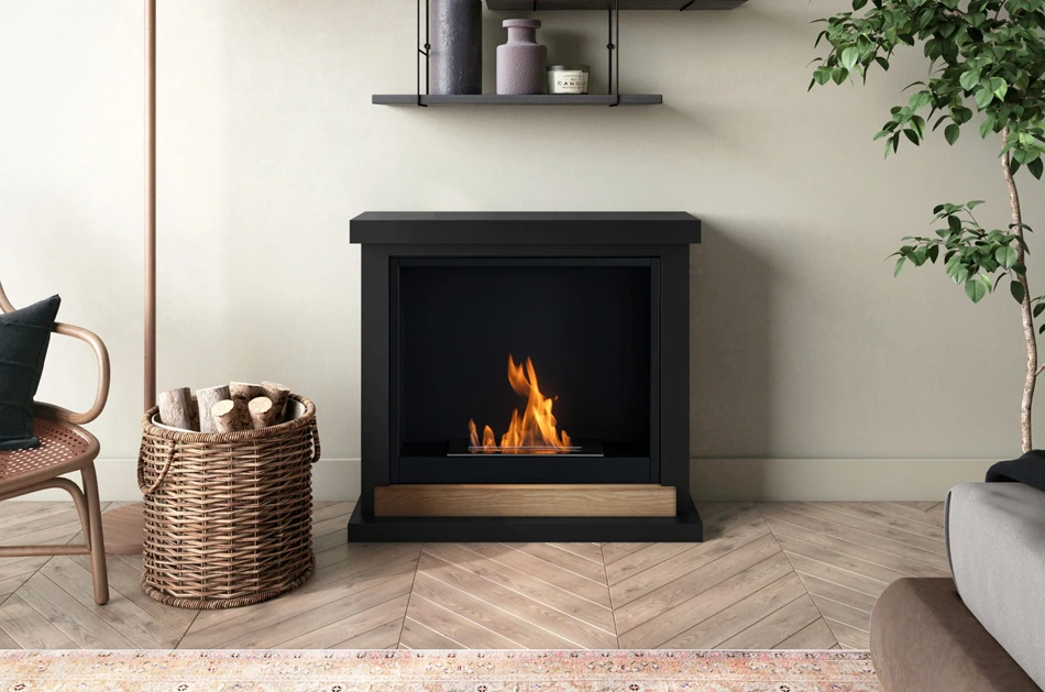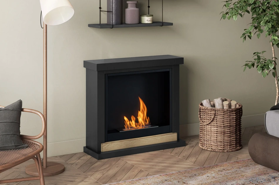 Hagen vyniká ozdobným páleným dubovým trámom na spodnej strane krbu a povrchovou úpravou Deep Black. Tento krbový plášť je taký ľahký, že ho možno ľahko presúvať medzi miestnosťami a jeho montáž je hračka. Rímsa biokrbu je vyrobená z MDF dosky.