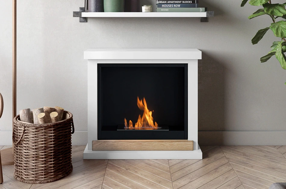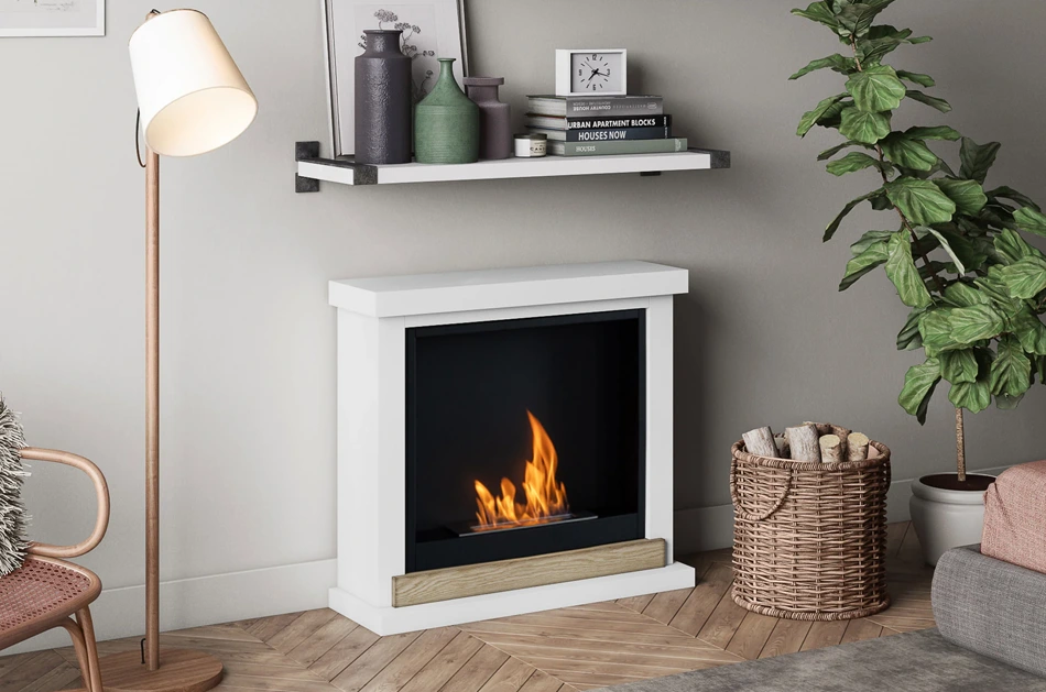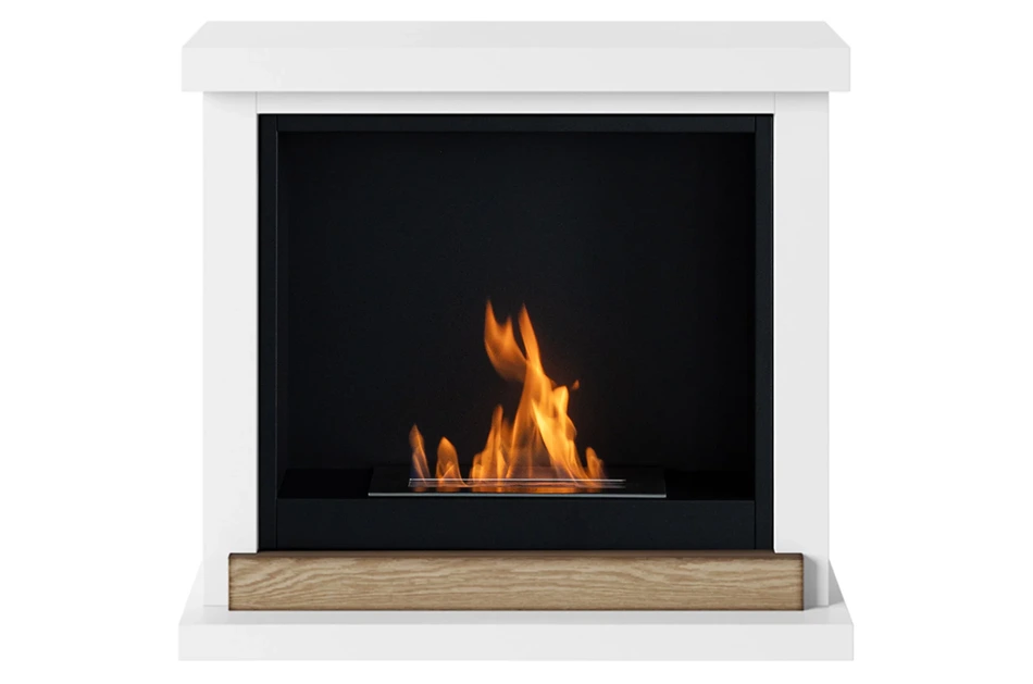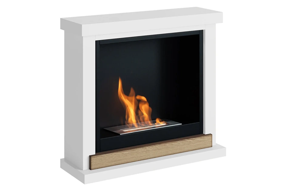 Hagen vyniká ozdobným páleným dubovým trámom na spodnej strane krbu a povrchovou úpravou Pure White. Tento krbový plášť je taký ľahký, že ho možno ľahko presúvať medzi miestnosťami a jeho montáž je hračka. Rímsa biokrbu je vyrobená z MDF dosky.