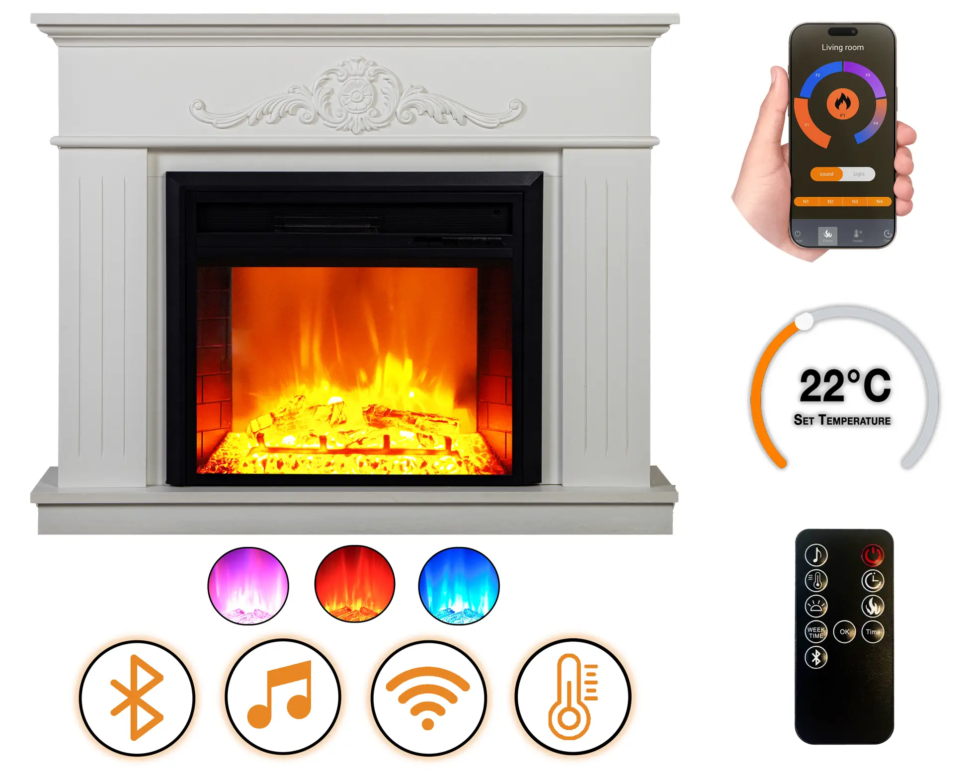 Vďaka zabudovanému Bluetooth reproduktoru zvyšuje Fabienne Striped EF 3 používateľský zážitok, poskytujúc pohlcujúce zvukové prostredie doplnené efektom praskajúceho dreva, ktorý imituje tradičný krb. Jednotka pracuje na napätí 230V a ponúka dvojstupňové vykurovanie s výkonom 900 W a 1800 W, čím zabezpečuje efektívne teplo v teplotnom rozmedzí 17–27 °C.