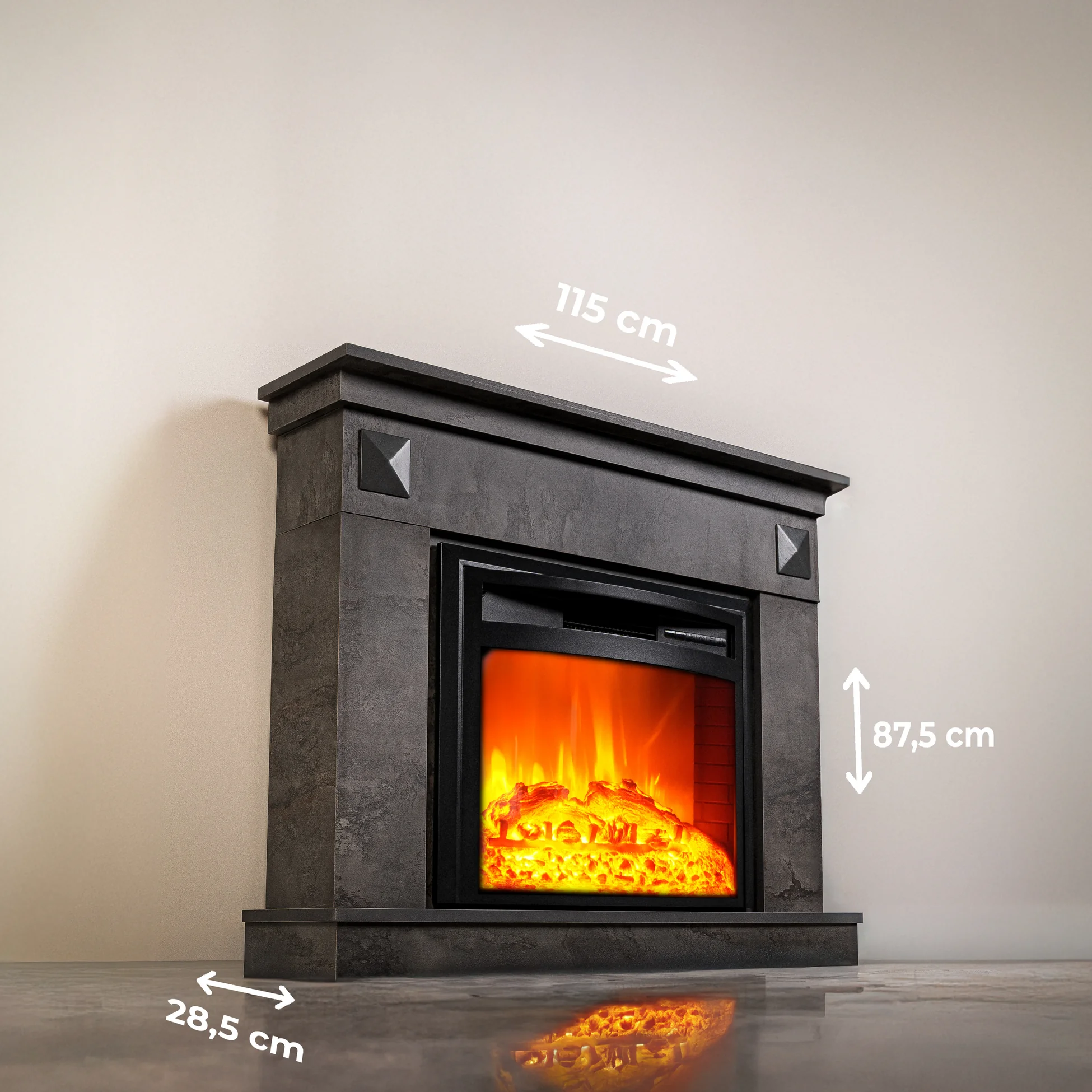 Elektrický krb Irony Gray EF 4 od DLC HOME spája moderný dizajn s pokročilou vykurovacou technológiou, čo z neho robí ideálny doplnok do súčasných interiérov. S rozmermi 115 cm na šírku, 28,5 cm na hĺbku a 87,5 cm na výšku je táto jednotka navrhnutá tak, aby sa bezproblémovo začlenila do rôznych dispozičných riešení miestností a zároveň vytvárala výrazný estetický bod.