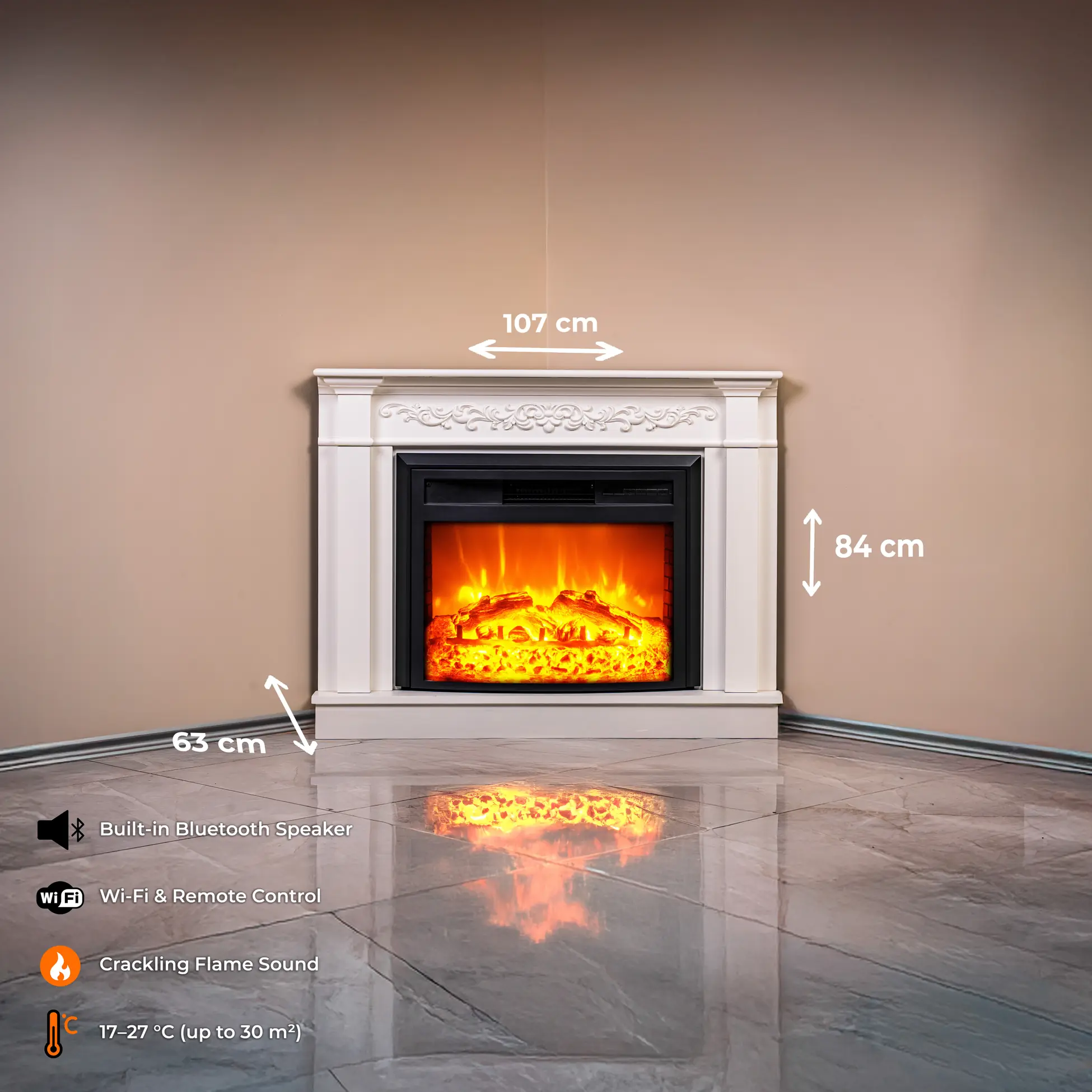 Tento elektrický krb je navyše obohatený o moderné technológie, ako je Bluetooth reproduktor a Wi-Fi pripojenie, vďaka ktorým ho môžeš ovládať diaľkovým ovládačom, mobilnou aplikáciou alebo priamo tlačidlami na zariadení. Programovateľný časovač v rozmedzí 30 minút až 9 hodín prináša ešte väčší komfort pre používateľov, ktorí hľadajú prispôsobiteľné riešenie vykurovania.