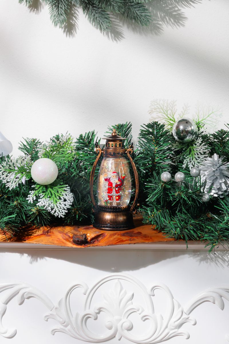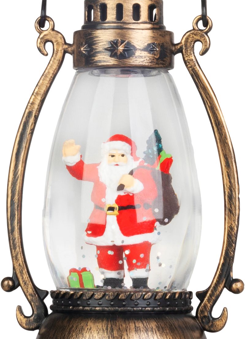 Tento štýlový lampáš so zasneženým motívom a figúrkou Santu vnútri je ideálny doplnok pre vaše sviatočné dekorácie.