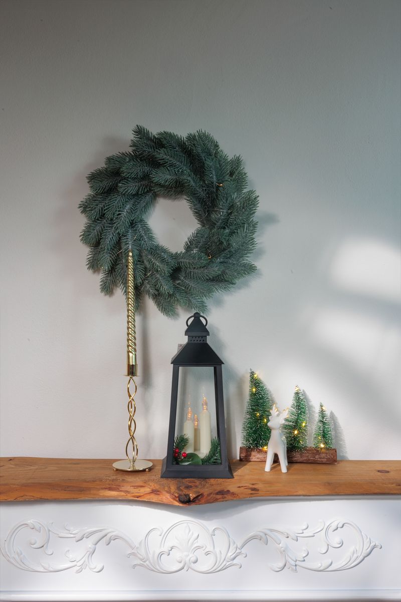 Vianočný lampáš MagicHome v elegantnom čiernom prevedení s imitáciou sviečok je krásnym doplnkom, ktorý navodí príjemnú atmosféru sviatkov. Vďaka 3 žltým LED svetlám vytvára efekt jemného, teplého svetla, ktoré pôsobí ako skutočné plamienky sviečok.