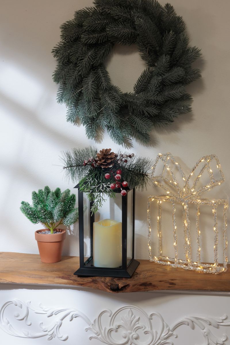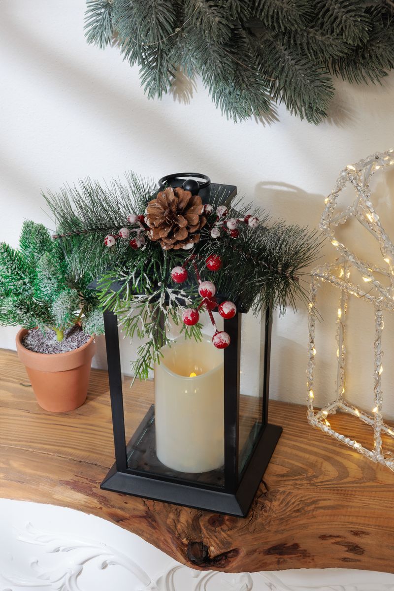Vytvorte si čarovnú atmosféru počas Vianoc s týmto elegantným lampášom MagicHome Vianoce. Čierny plastový dizajn s detailom v podobe ozdoby z ihličia, bobúľ a šišky dodáva dekorácii autentický zimný vzhľad.