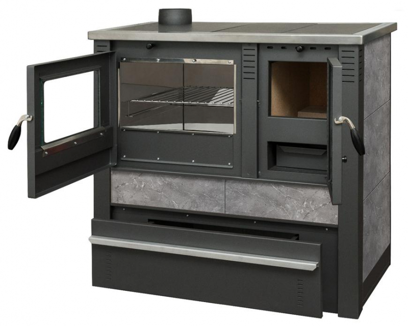 Úvod » Kachle a sporáky » Sporák na tuhé palivo Panonia, 10,5 kW, šedý, ľavý vývod