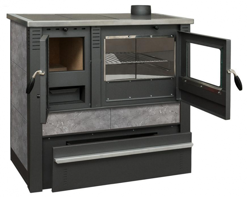 Úvod » Kachle a sporáky » Sporák na tuhé palivo Panonia, 10,5 kW, šedý, pravý vývod
