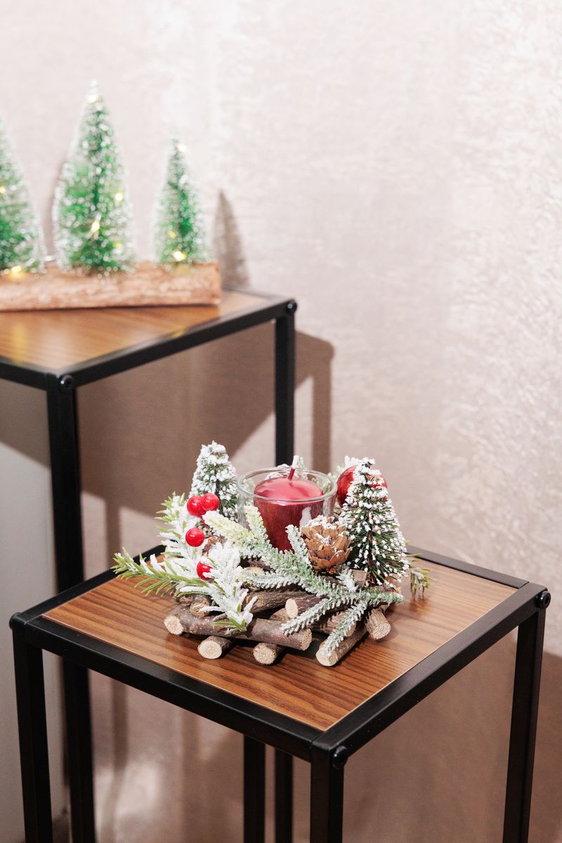 Vytvorte vo svojom domove kúzelnú vianočnú atmosféru s prírodným svietnikom MagicHome. Dekorácia je vyrobená z prírodných materiálov a zdobená drobnými vianočnými stromčekmi, šiškami, červenými bobuľkami a snehovým efektom, ktoré dokonale navodia zimnú pohodu.