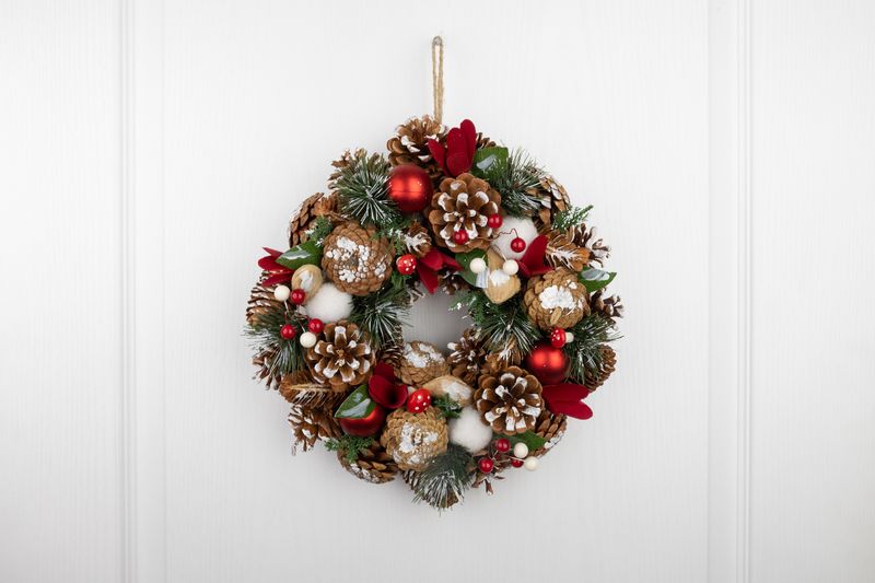 Úvod » Vianočné vence » Veniec MagicHome Vianoce, závesný, prírodný, s čečinou a muchotrávkami, 30 cm